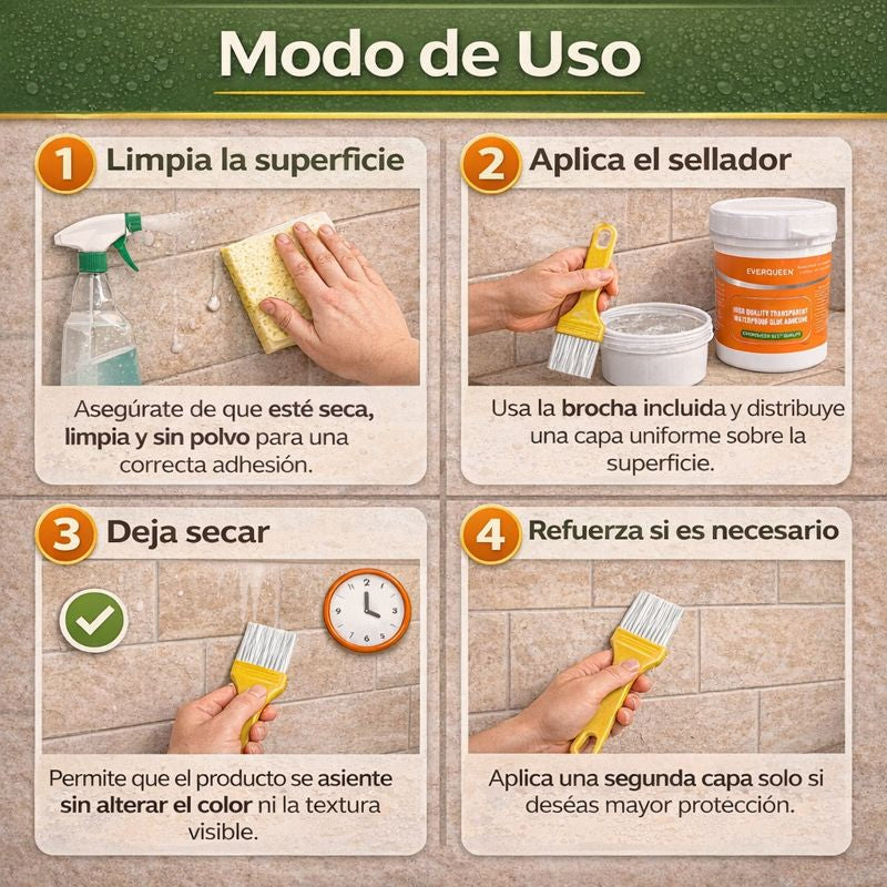 Sellador Impermeable Transparente – Repele la humedad – Conserva el acabado natural